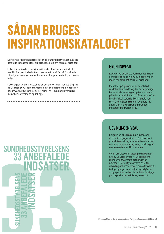 Design af inspirationskatalog målrettet kommunerne. Lavet for organisationen Sex & Samfund.